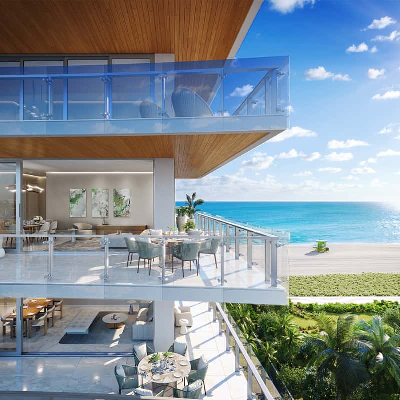 Sitting in the most highly coveted stretch of Miami Beach, Millionaire’s Row, lies a sparkling piece of luxury real estate like no other - 57 Ocean. Prestigious architectural firm Arquitectonica has collaborated with renowned designers to accomplish one goal - to create a one of a kind residential destination that pays homage to the ocean that inspired it. At every turn, the ocean’s influence can be seen, including the choice of materials used, and the fluid flow of the layouts and interiors. Even in the design of the building itself is meant to reflect its muse. Residences in 57 Ocean are designed to flow effortlessly from indoor to outdoor living. The open floor plans allow for relaxed living by combining the main areas to converge as one great room. The organic layout flows outside to an impressive oversized 12 foot deep terrace overlooking the water - either the Atlantic Ocean, intracoastal, or Biscayne Bay. 57 Ocean has been designed in a Brazilian style, combining a relaxed nautical feel with the finest luxury finishings. Floor plans range from 2-4 bedrooms with square footage ranging from 1,754 square feet soaring to nearly 7,000 square feet.