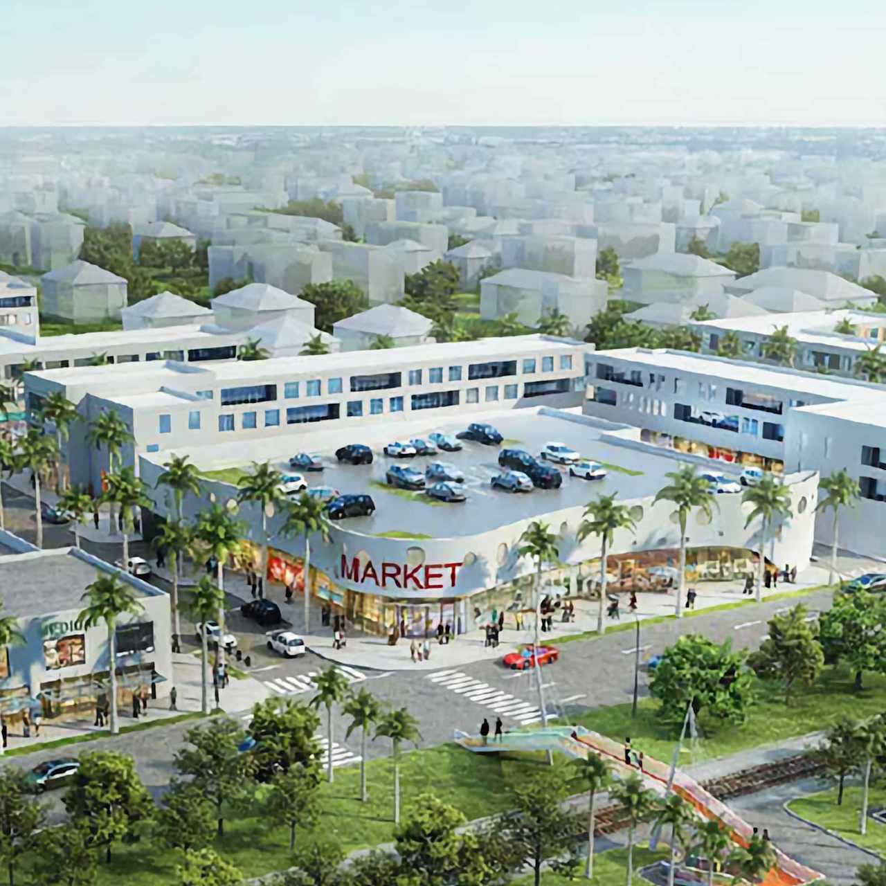 270 parking spaces will be provided, which will serve both the residential and commercial components.